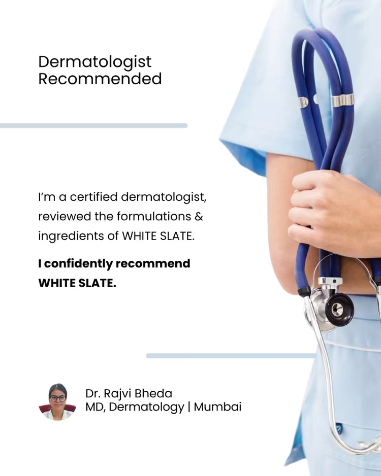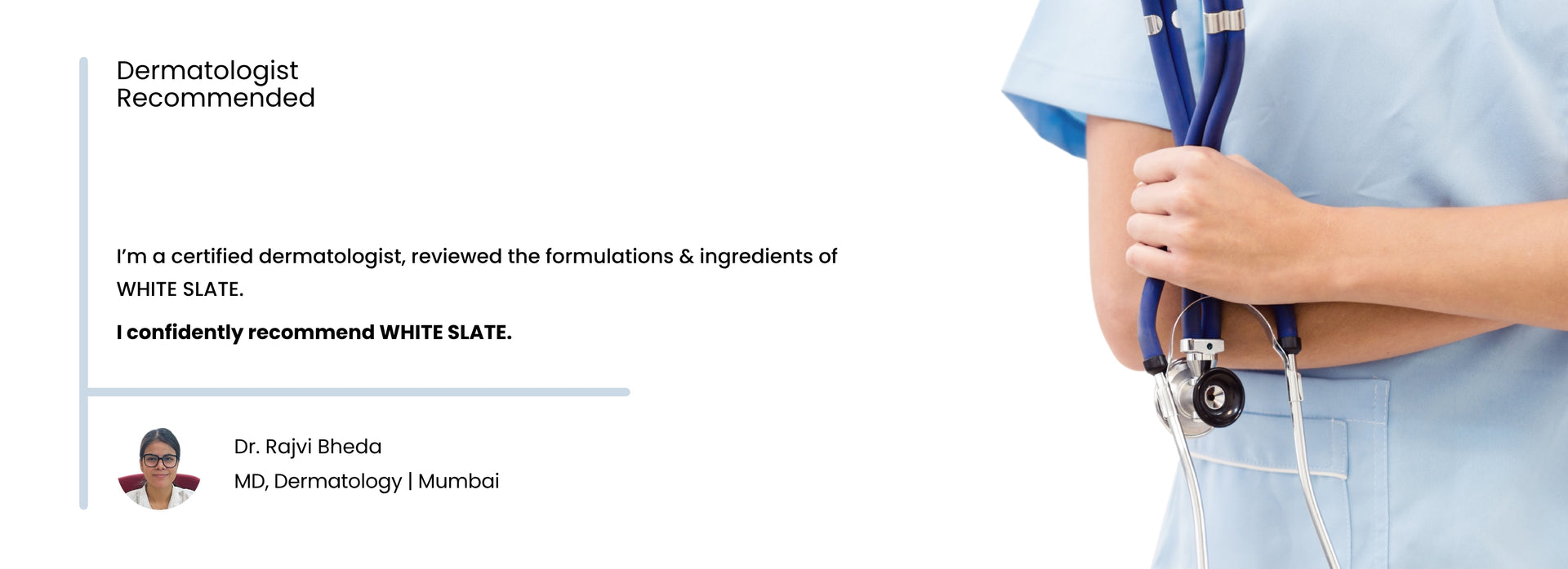 As a board-certified dermatologist, I have reviewed the formulations and ingredients of WHITE SLATE's skincare products.